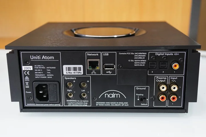 So, what does it do? The answer to that is…a lot! There are many ways to play your music through the Atom. Firstly you can wirelessly play your own music collection from a NAS drive, Naim Uniti core, or other UPnP device, it has both Spotify and Tidal streaming services integrated as well as ways of playing other services such as Qobuz via the in-built Chromecast Audio. Internet radio and Bluetooth are included of course, as well as Airplay for Apple users. As far as physical inputs go you will find one analogue phono input, ready for an external CD player or turntable via a phono stage. Digital inputs consisting of two optical, one coax and a USB also feature. There is then of course an Ethernet input and owners have the option of having a HDMI input included to connect a TV too. Finally a pre-amplifier analogue output is also if you wish to upgrade the Atom with an external power amplifier.