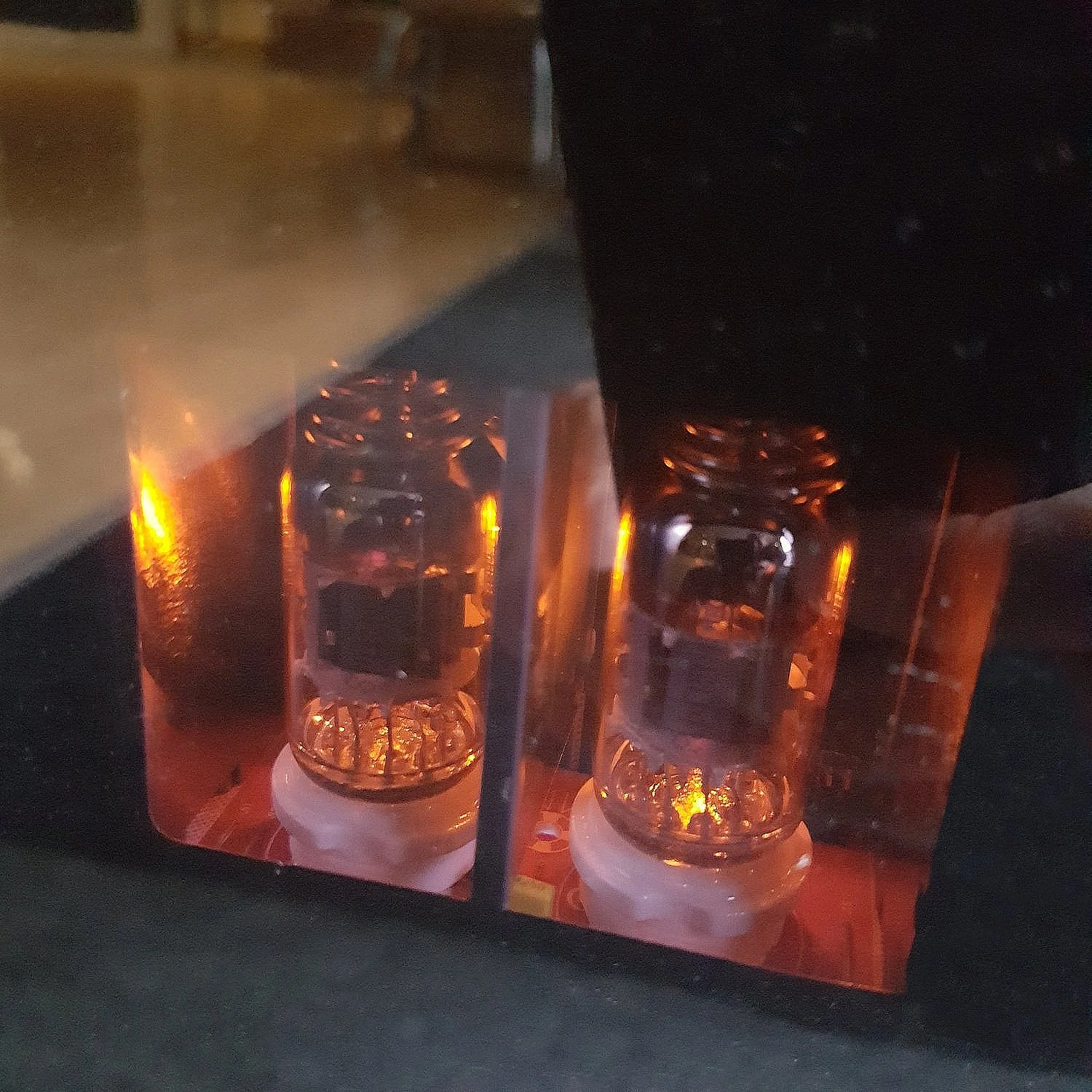 Unusually, and in common with many other Advance Paris products, there is also a valve-driven preamp stage. Apart from looking pretty exotic, these little glowing valves are designed to play an important part in the sound reproduction.