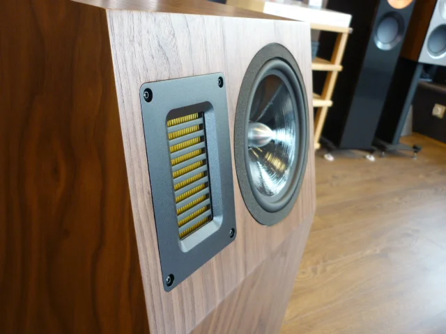 The offset tweeter enables you to place the speakers with the tweeters either further apart from each other for a wide open soundstage or for a more concentrated image you can place the speakers in the room with the tweeters situated closer together.